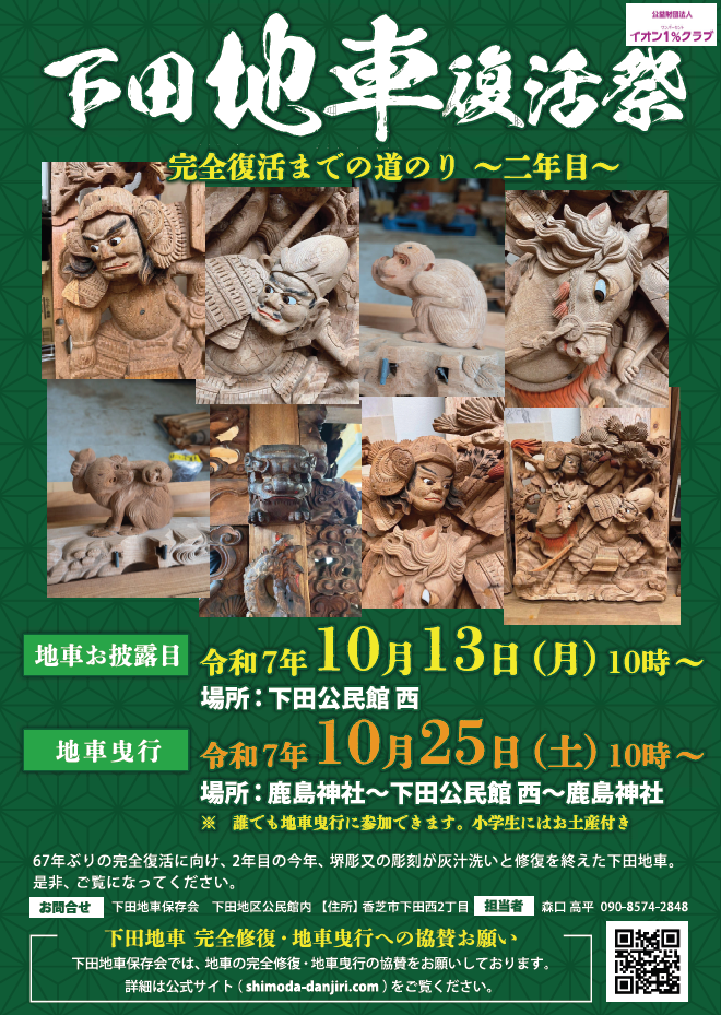 2年目の下田地車の修復に向けて、この5月17日(土)鹿島神社から下田地車を預かっていただく日を迎えることになりました! また、みなさまにその様子をお届けしたいと…